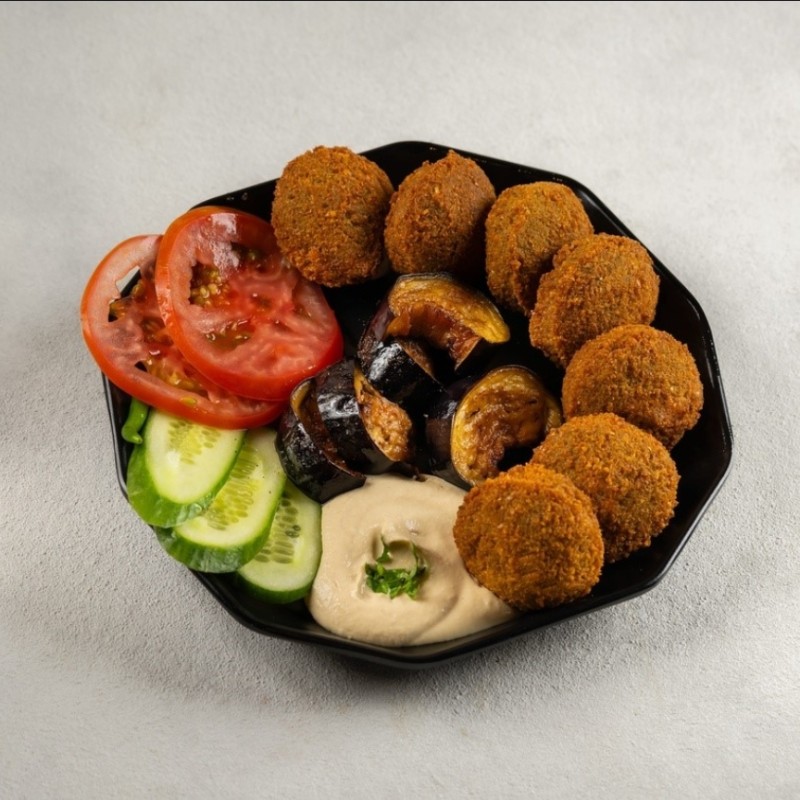 يحتوي علي صحن حلوم فلافل مقرمشة وهشة +بطاطس مقرمشة +صوص +يقدم شهي وساخن